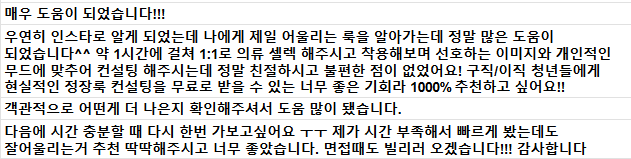 많은 분들이 참여 후 "면접정장만큼은 고민이 싹! 해결되었어요"라고 말씀해주신답니다 😊