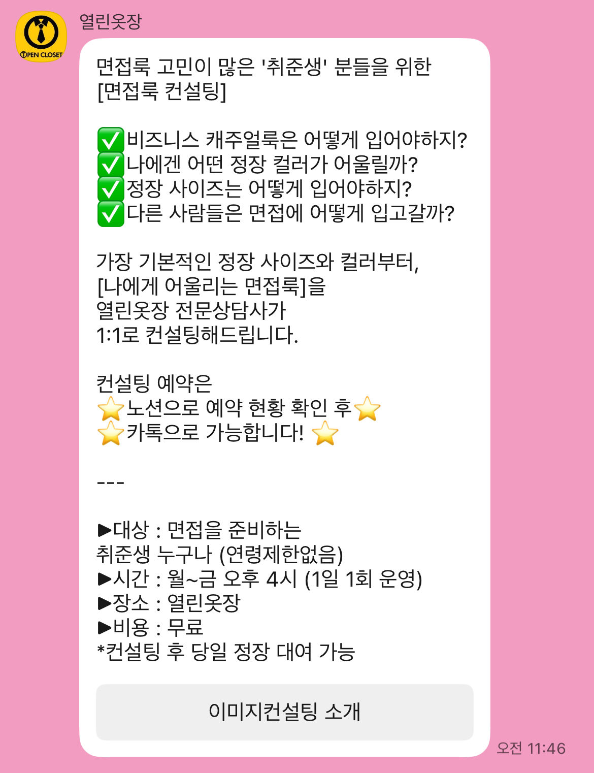 열린옷장에서 1:1 [면접룩 컨설팅]을 경험하실 수 있다는 사실, 아시나요?