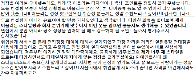 면접정장만큼은 좀 더 다정하고, 자세하게 알려주고 싶었어요!