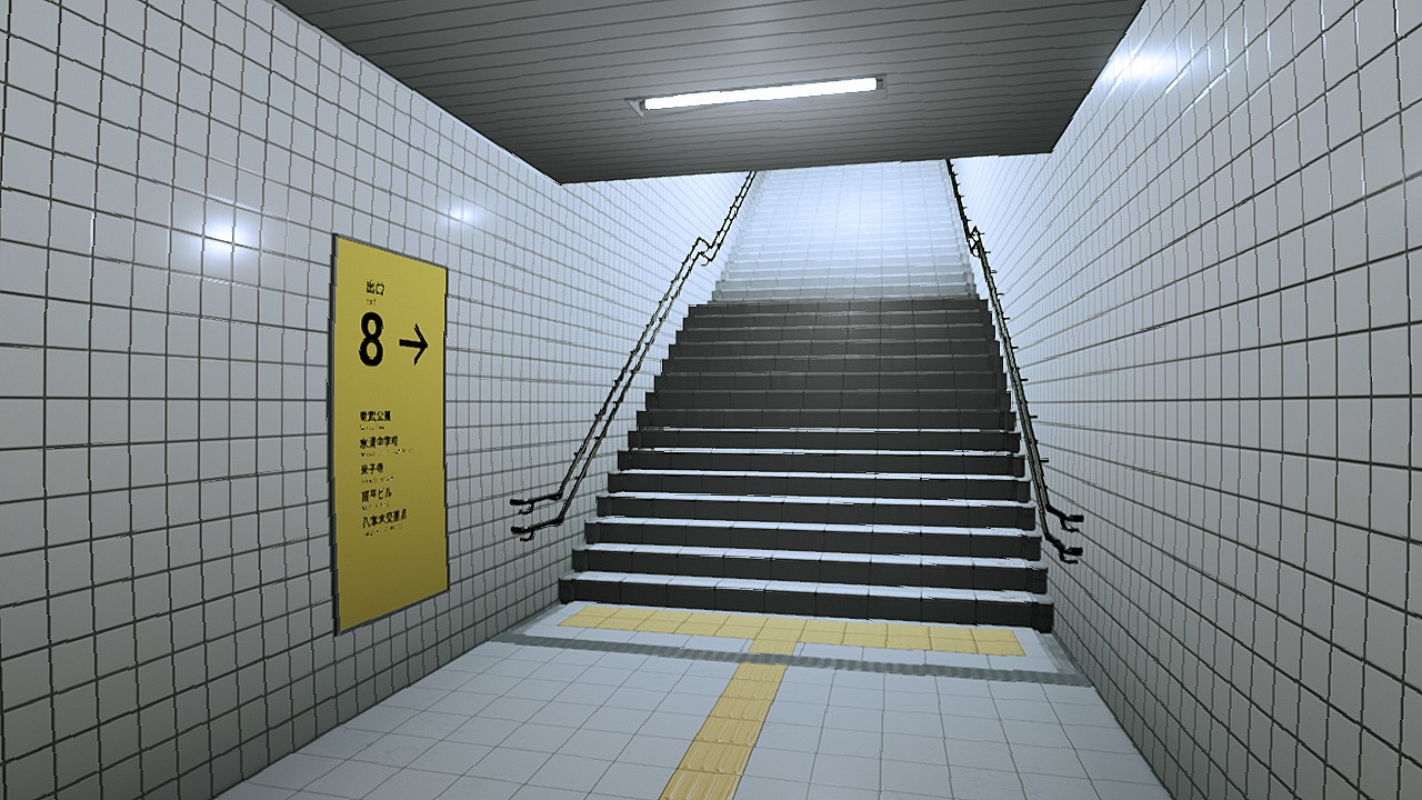 게임은 구매할지 말지 시간이 좀 걸렸다. 플레이해 보고 싶은 호기심과 정말 공포 게임을 할 수 있을지 갈등이 생겨서 한참을 고민하고, 결국 못 먹어도 고를 진행했다. 스토리가 없는 원작 게임은 첫 화면부터 루프 공간에 갇 바로 탈출을 향해 전진한다. 게임 시작 전 미리 8번 출구 게임에 관한 루프 설정을 찾아봤고 몇 가지 이상 현상을 알고 있었지만 무서워서 관찰을 제대로 하지 못했다. 뻔하게 티 나는 이상 현상 이외는 운으로 찍어서 풀었다. 그래도 1시간 안에 클리어했으니 성공적인 기록이다. 마지막 8번 단계에서 심장이 너무 뛰어서 귀가 먹먹했을 정도였다.
